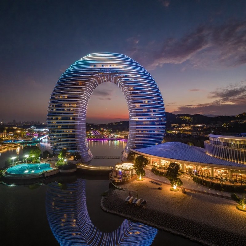 湖州喜来登度假酒店即著名的“月亮酒店”,作为浙江标志性建筑,其独特环形设计与湖心位置早已成为城市名片。选择在此下榻,不仅彰显您的品味与格调,更在客户心中树立专业可靠的形象。无论是接送访客还是社交媒体分享,这座地标建筑都能为您的商务活动增添话题性与信任感,助力差旅价值最大化。