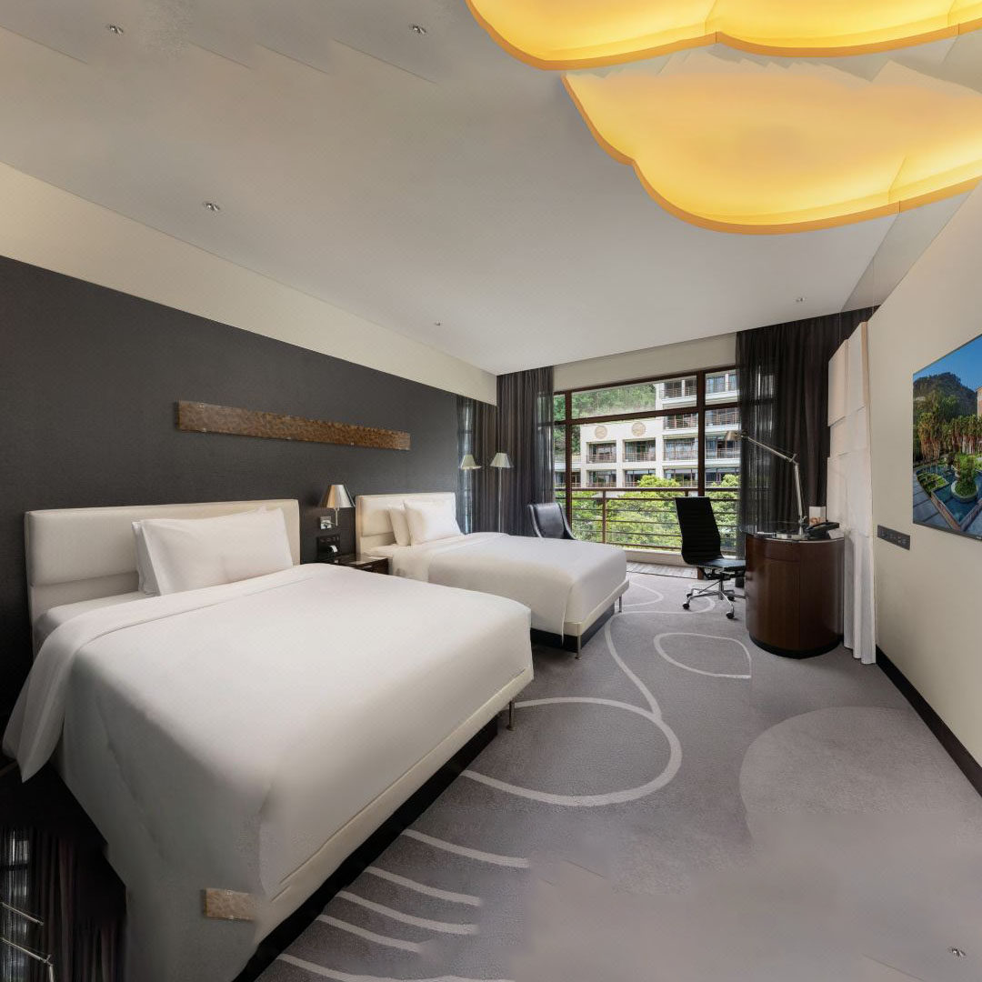 庭景阳台大床房直面中山林公园绿意,推窗即见山野美景,为高强度差旅注入自然疗愈力。在会议间隙或夜晚归房时,远眺葱茏林木、聆听鸟鸣风声,有效缓解压力与焦虑。这种都市中的生态居所,重新定义了商务酒店的休憩价值。