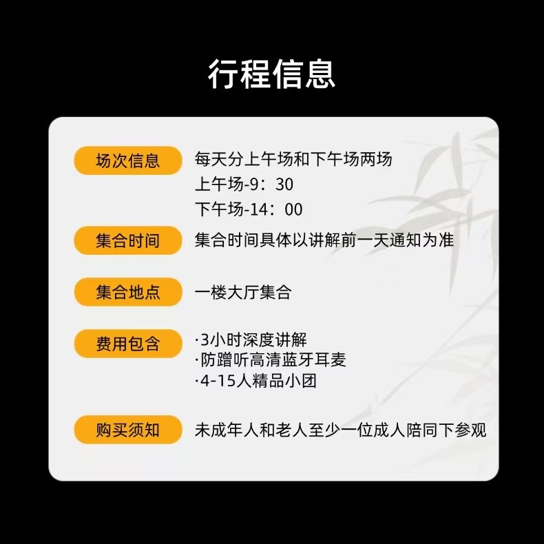 虽然是差旅独行,但不必孤独。15人精品小团营造轻松交流氛围,参与者多为对历史人文感兴趣的人士,便于建立高质量社交连接。在讲解间隙或展品前自然互动,或许能结识潜在合作伙伴或志同道合的朋友。这种低压力、高价值的社交场景,是传统商务应酬之外的清新选择。