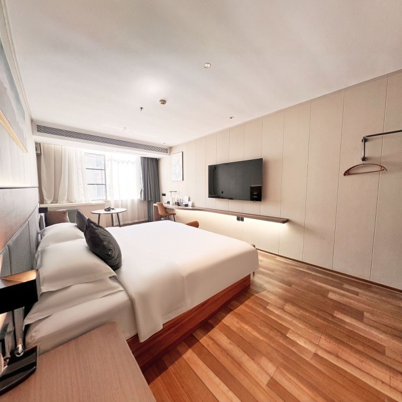 部分房型配备‘影院房’功能,让您在结束一天紧张工作后,足不出户即可享受私人观影体验。高清投影、环绕音响与舒适床品相结合,打造沉浸式放松空间。对于需要调整时差、缓解压力或单纯想安静独处的差旅人士而言,这无疑是一大亮点。无需外出寻找娱乐场所,回房即享高品质休闲,有效提升差旅住宿的满意度与恢复效率。