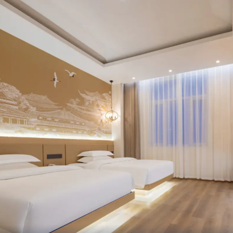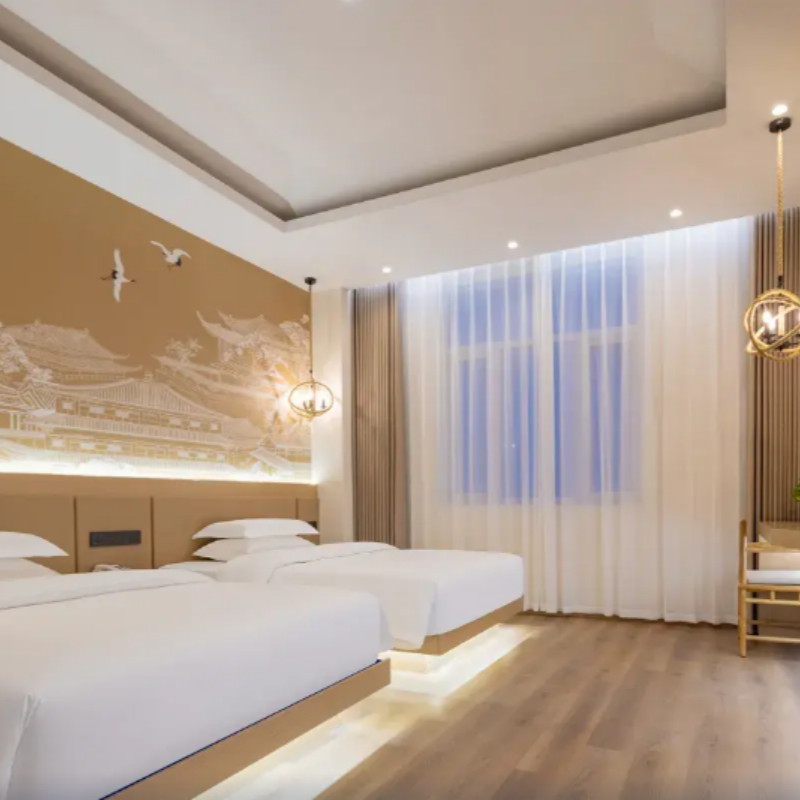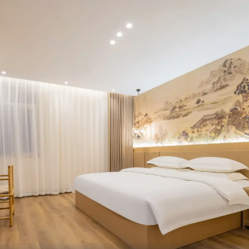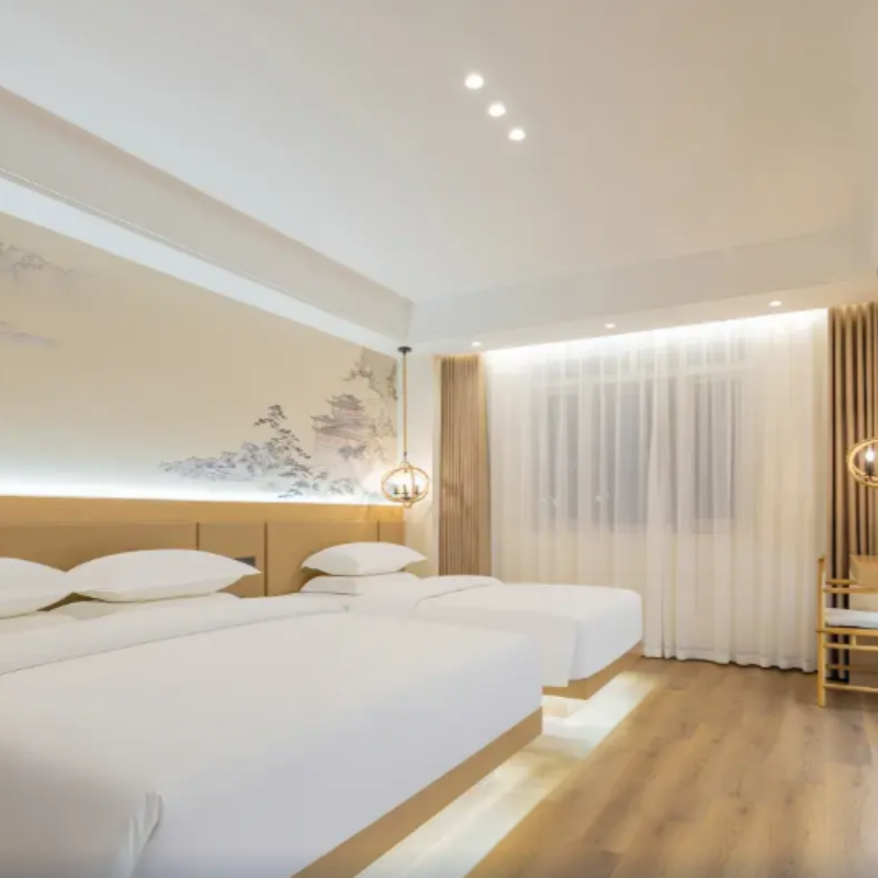 酒店采用中式轻奢装修风格,整体设计简约而不失格调,融合传统元素与现代舒适感。房间宽敞明亮、干净整洁,营造出静谧放松的氛围,特别适合结束一天高强度差旅或景区游览后恢复精力。无论是独自出差还是携伴同行,这里都能提供兼具审美与实用性的高品质住宿体验,让您的旅途不止于奔波,更添一份雅致与从容。