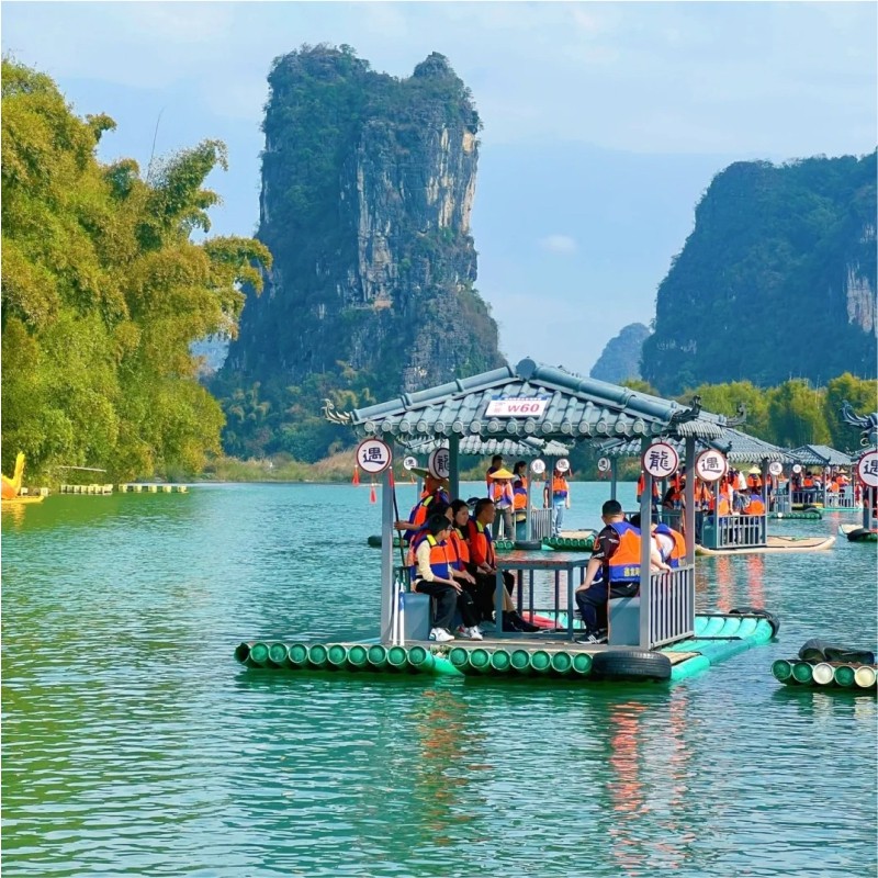 专为注重体验的差旅人群设计,全程安排大漓江三星游船,舱内设施齐全、视野开阔,提供平稳舒适的水上观景体验。在繁忙工作之余,乘船慢游于‘江作青罗带,山如碧玉簪’的漓江画卷中,既能放松身心,又不失体面与格调,是高效差旅与深度度假的理想结合。