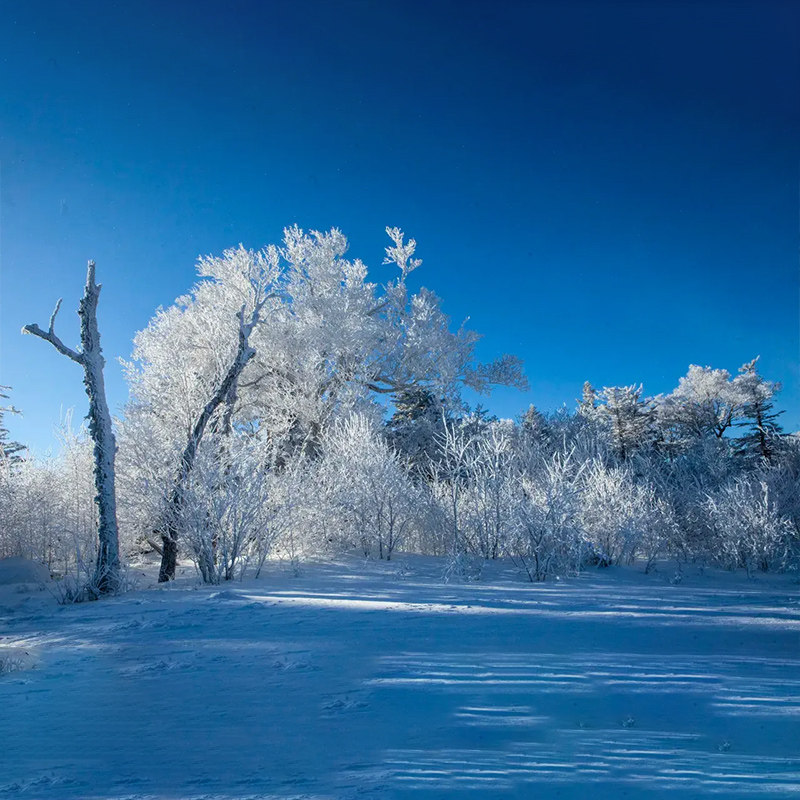 北国的冬天是最美丽的,飘雪的山上满上遍野的雾凇,形成了别样的风景