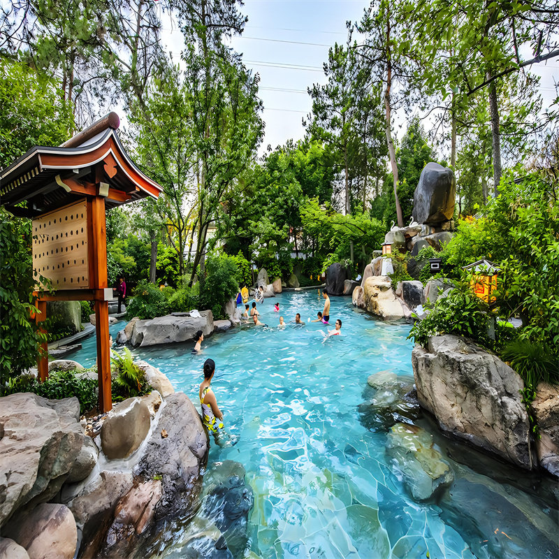。 园林温泉景区内设各色泡池,“龙凤迎宾汤”、“九龙至尊汤”、“