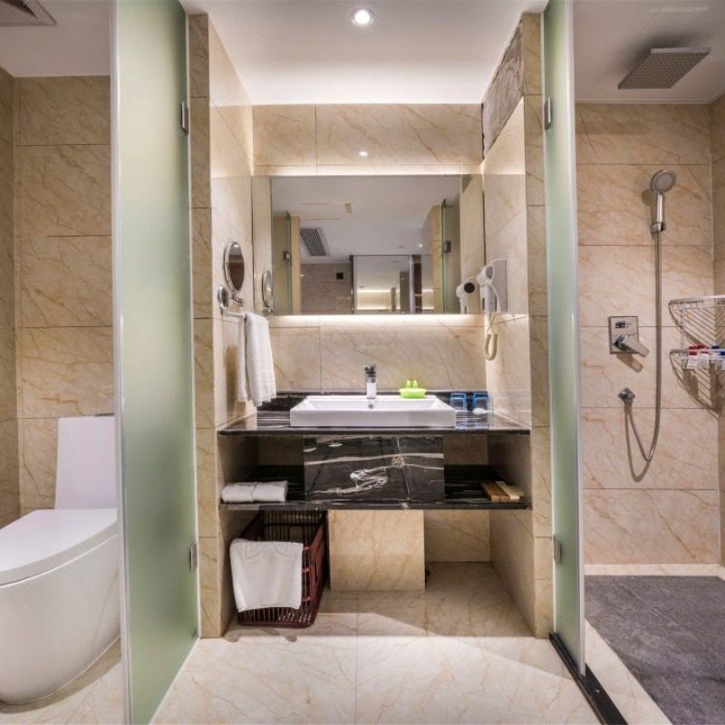 房间布局合理、装修精致,配备柔软亲肤的高品质床品与可自由调节的灯光系统,充分考虑差旅人群对睡眠质量与私密空间的需求。无论是深夜处理邮件,还是清晨快速整装出发,灵活的照明与静谧环境都能帮助旅客迅速恢复精力,以最佳状态投入工作或继续旅程。