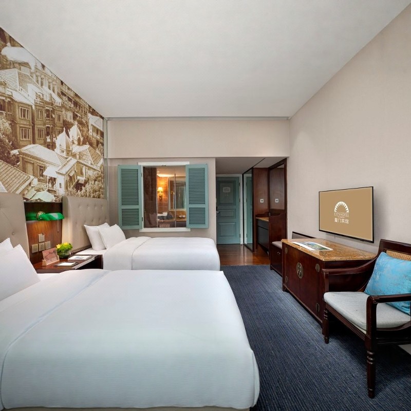 入住厦门宾馆行政景观房,房间设计融合南洋风情与现代简约风格,窗外可览城市或庭院景致,环境清幽宁静。即使身处闹市,也能享受高质量睡眠,为第二天的会议或行程蓄满能量。特别适合对住宿品质有要求的商务人士及带娃家庭。