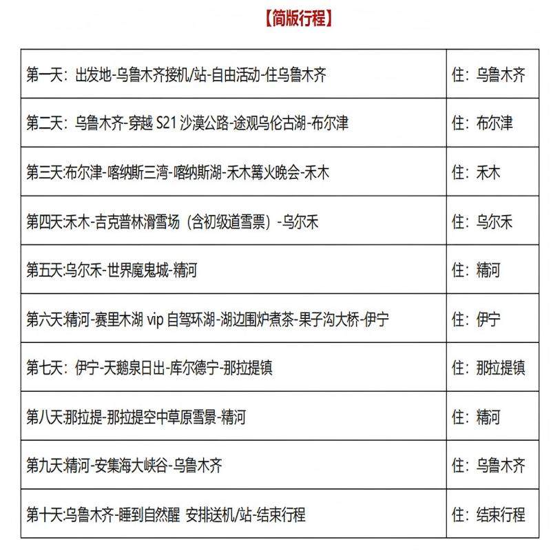 全程纯玩无购物店安排,杜绝无效停留与隐形消费,最大化利用宝贵的差旅假期。10天行程聚焦那拉提草原、赛里木湖、吉克普林滑雪场等核心景观,节奏张弛有度,既适合短暂逃离高压职场,又能高效完成一次高价值的身心充电。对时间敏感的商务人士而言,这是对假期最明智的投资。