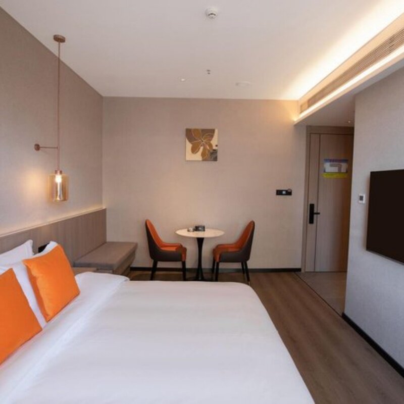 客房空间宽敞明亮,配备高速Wi-Fi、多功能办公桌及充足照明,为差旅人士打造理想的临时办公环境。无论是视频会议、文件处理还是远程协作,都能在此从容应对。同时,落地窗引入自然光线,有效缓解长时间用眼疲劳,让工作与休憩无缝切换,提升整体出差效率。