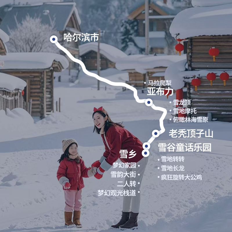 行程覆盖哈尔滨与牡丹江两大目的地,科学规划路线,避免重复折返。从哈尔滨出发,经亚布力度假区至雪乡(隶属牡丹江市),形成高效环线,最大化利用有限差旅时间。沿途涵盖自然风光、冰雪娱乐与民俗文化,确保每一段路程都有看点,让短暂假期也能收获丰富体验,特别适合时间紧张但追求深度的商务旅客。