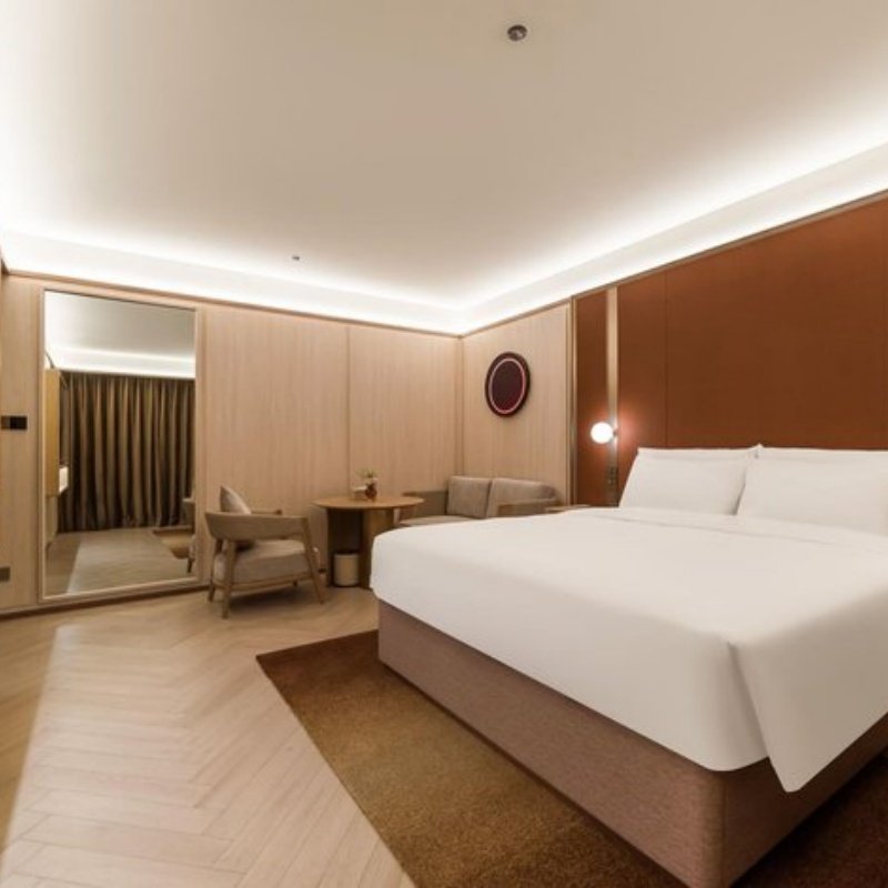 作为华住集团旗下中高端品牌,桔子水晶以设计感与品质服务著称。汕头黄河路门店延续品牌基因,在隔音、卫浴、智能设备等细节上精益求精,确保差旅人士在有限时间内获得高品质住宿体验,彰显企业对员工出行福利的重视。