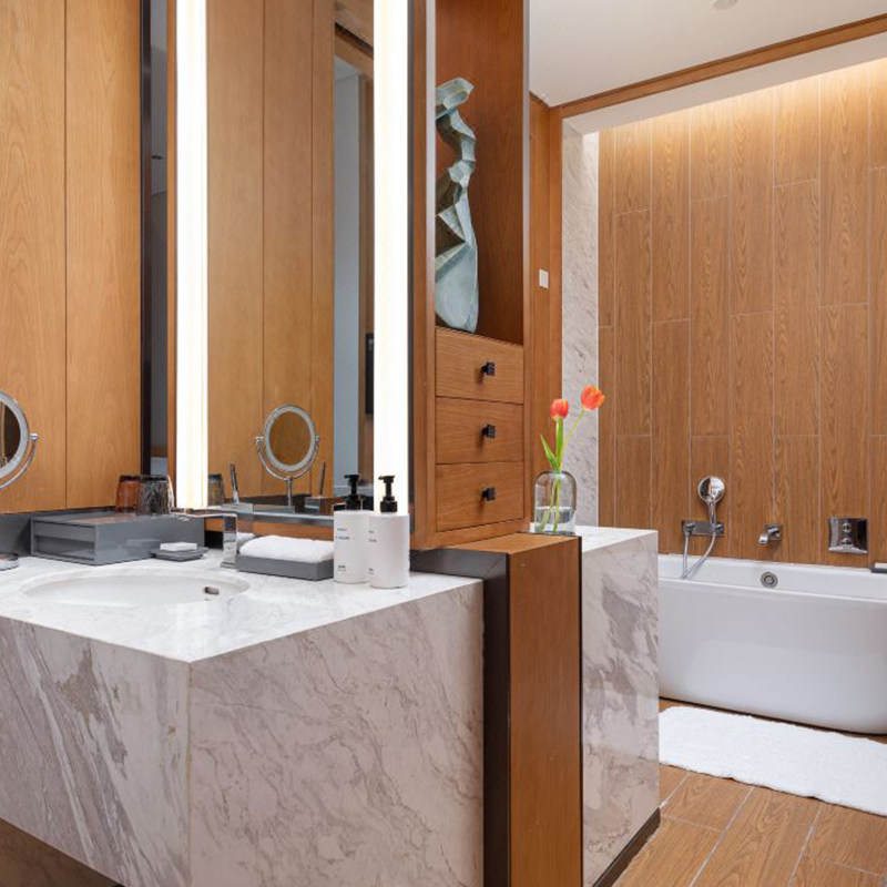 酒店客房“隐于山,显于市”,巧妙融合原生态自然景观与现代便利设施。差旅人士白天可在安静山景房中处理邮件、召开视频会议,夜晚则沉浸于静谧山林氛围中恢复精力。这种设计既保障了工作效率所需的私密与专注,又提供了远离喧嚣的疗愈环境,特别适合高压职场人群进行短途身心充电。