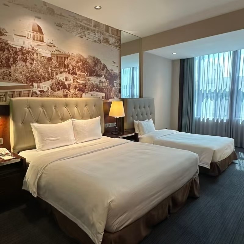 酒店采用现代中式雅致装饰风格,全实木家具搭配时尚灰色固装板与整切大理石卫浴,营造出兼具东方韵味与当代审美的居住空间。差旅途中,宾客不仅能享受高品质住宿,还能在细节中感受闽南文化与南洋风情的交融,让商务出行多一份人文温度与审美享受。