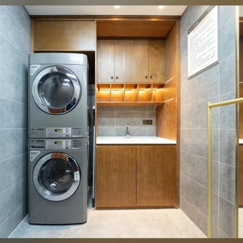 现代中式雅致装饰,全实木家具、时尚灰色固装板融合整切大理石高端卫浴