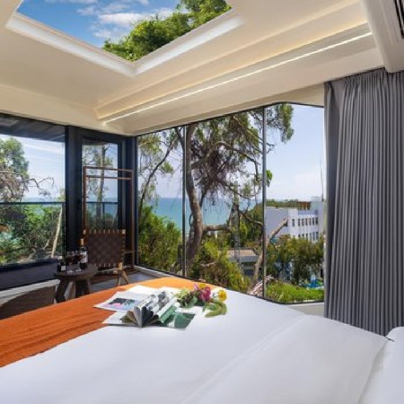 白榆山房将现代设计语言与海岛自然元素巧妙融合,每一处细节都经过用心打磨。对创意行业或需要头脑风暴的差旅人士而言,这里不仅是休憩之所,更是激发灵感的源泉——海天一色的开阔视野与极简美学空间,助你突破思维边界。