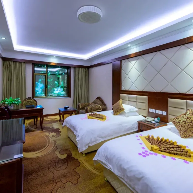 本套餐将差旅便利性与人文度假完美结合:入住中式古典风格的豪华双床房,含每日营养早餐;同时赠送双人莫高窟门票,省去现场排队烦恼。酒店位于机场路中段,交通便捷,且配备7间大小会议室,可随时切换商务模式。无论是独自出差还是携伴同行,都能在高效行程中感受敦煌厚重的历史底蕴。