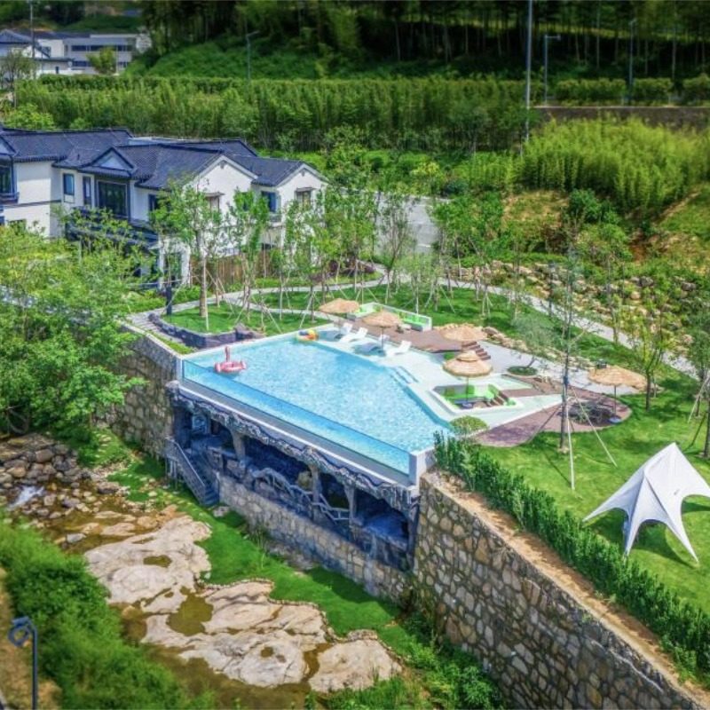酒店配备无边泳池与垂钓区域,为商务差旅创造非正式交流空间。客户洽谈、团队建设或同行联谊均可在此轻松展开,打破会议室局限,以自然氛围促进深度沟通。同时契合‘古村古镇’文化标签,彰显品味与格调。