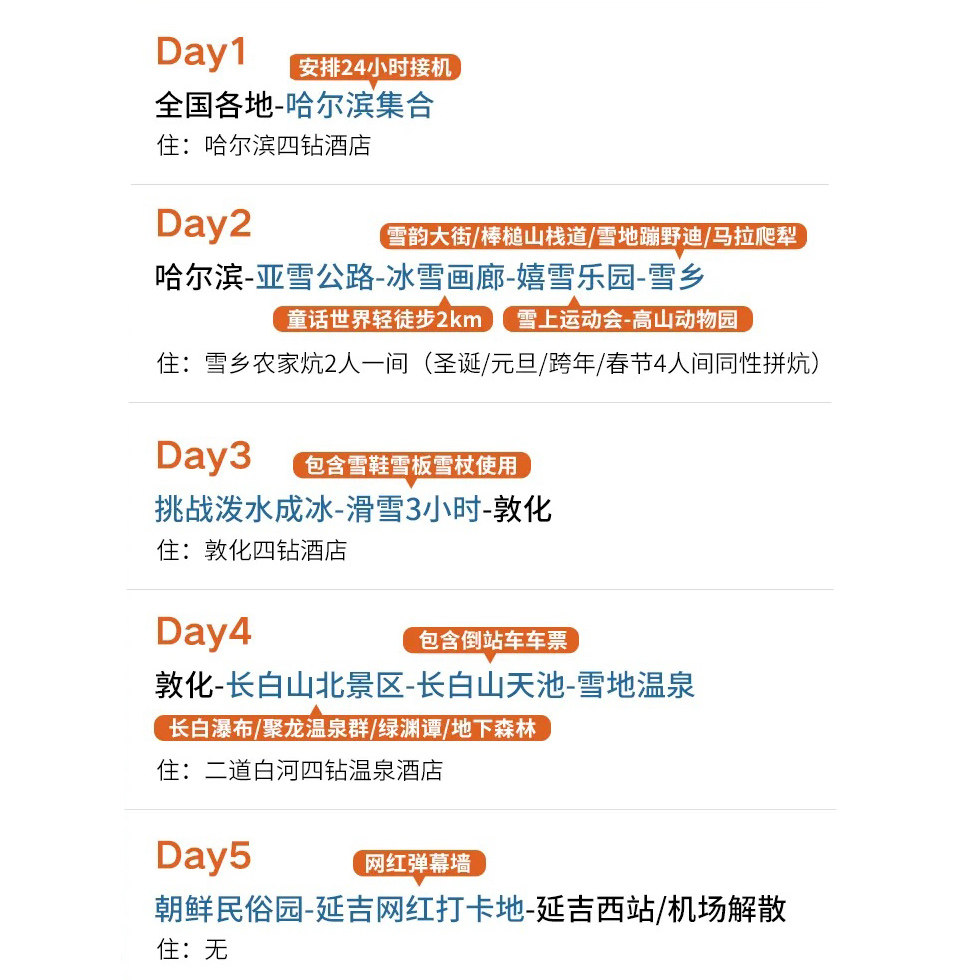 本线路支持1人即可下单预订,极大满足商务人士或独自出差后顺道度假的需求。无需拼团等待,行程安排灵活,特别适合临时调整差旅计划的旅客。无论是结束哈尔滨的公务后开启休闲之旅,还是独自探索长白山秘境,都能即刻启程,省去协调多人时间的烦恼,真正实现说走就走的差旅+度假融合体验。