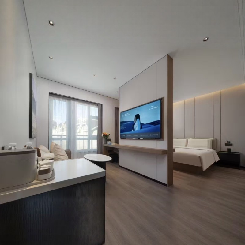 亚朵酒店高级大床房配备声控灯光、智能马桶、高速Wi-Fi及部分房间落地窗观景功能,将现代科技融入差旅场景。商务人士可在房间内高效处理邮件、视频会议,同时享受自动化带来的舒适体验。智能化设施不仅提升居住品质,更契合当代差旅人群对高效、便捷、私密空间的核心需求。