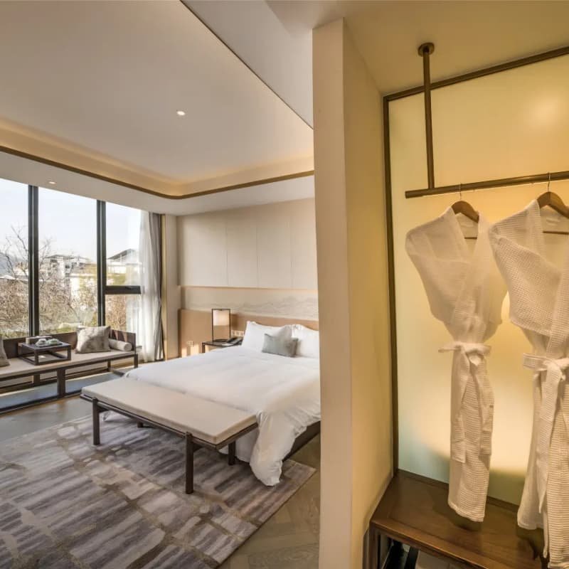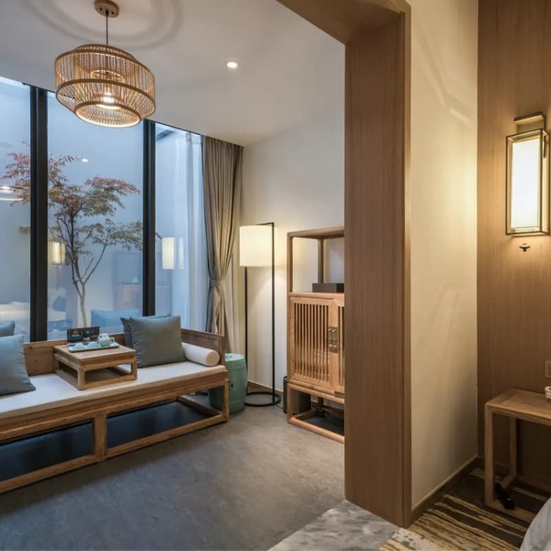 酒店整体采用禅意风格设计,以极简线条、天然材质与柔和光影营造出空灵静谧的氛围。研究表明,此类环境有助于降低压力水平、提升专注力与创造力。对于高管、创业者或需高强度脑力输出的差旅者而言,在此下榻不仅能获得优质睡眠,更能在晨起冥想或茶歇时理清思路,为重要会议或决策积蓄能量。