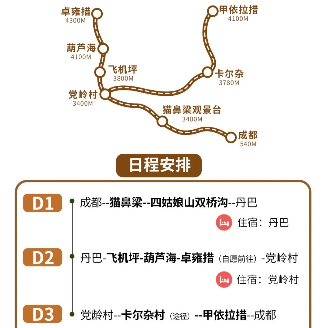行程以成都为起点和终点,便于从全国乃至全球各地飞抵后直接开启旅程。成都作为西南交通枢纽,航班密集、高铁通达,差旅人士可轻松衔接前后工作安排。往返仅需3天,高效利用周末或短假期,实现‘说走就走’的高品质微度假。