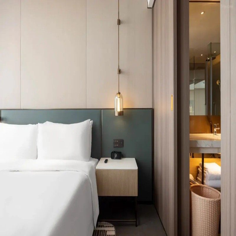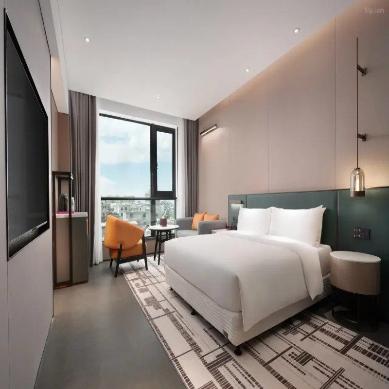 酒店客房设计现代而温馨,大面积落地窗带来绝佳城市或园林景观,自然采光充足,空间宽敞舒适,配备高品质床品与智能设施,既适合商务人士高效办公,也满足家庭旅客对私密与放松的需求。柔和灯光与精致软装营造出独特的氛围感,让疲惫的差旅者在夜晚获得深度休憩,第二天精神饱满地继续行程。