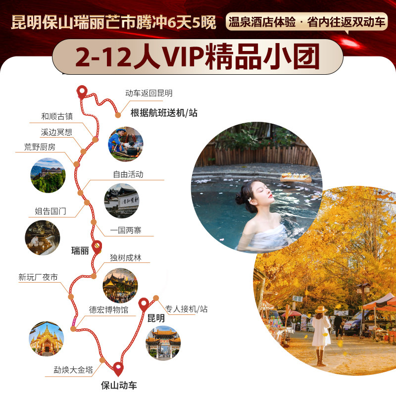 本行程采用“一价全含0自费”模式,涵盖昆明、腾冲、芒市6天5晚所有交通(含双动车)、住宿、景点门票及特色餐饮,彻底告别隐性消费。对于差旅人士而言,无需额外预算规划,报销清晰透明,节省财务对账时间。小包团形式保障私密性与灵活性,即使临时出差调整行程,也能快速融入团队节奏,实现高效工作与深度放松的无缝切换。