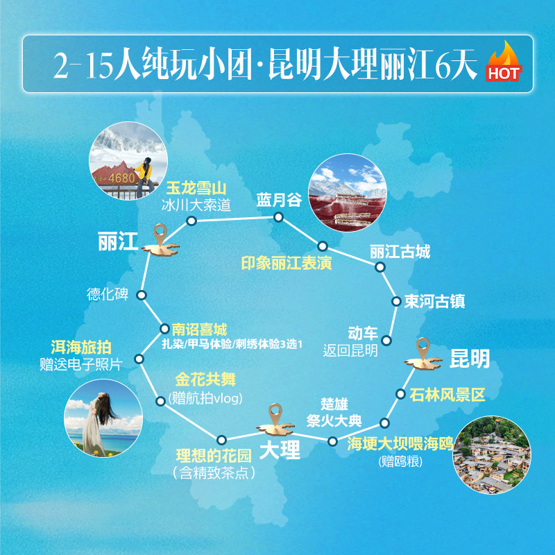 本线路支持1人单独报名参团,无需拼凑人数,极大提升了差旅人士的时间灵活性。无论是临时出差后顺道度假,还是独自一人探索云南风光,都能轻松成行。小包团模式兼顾私密性与社交感,既适合商务人士短暂放松,也便于自由安排后续工作行程,真正实现‘说走就走’的高效差旅度假体验。