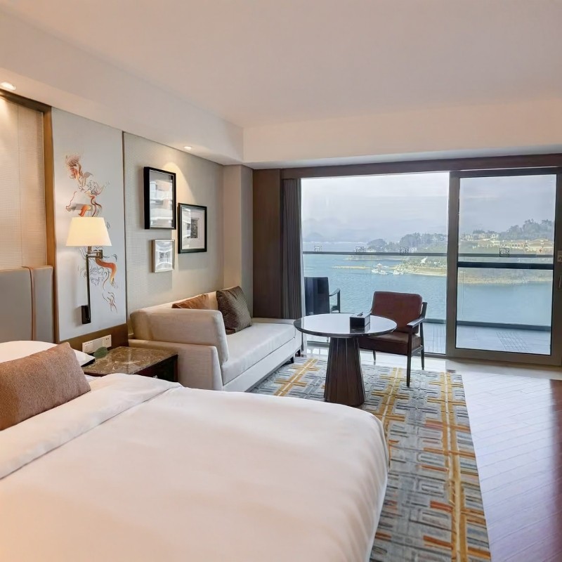 千岛湖绿城度假酒店作为知名地产品牌旗下高端度假物业,以高标准服务与完善设施著称。房间采用高品质寝具与卫浴配置,公共区域整洁有序,前台支持快速入住与权益兑换。对于注重住宿品质与服务稳定性的商务旅客而言,是值得信赖的差旅落脚点。