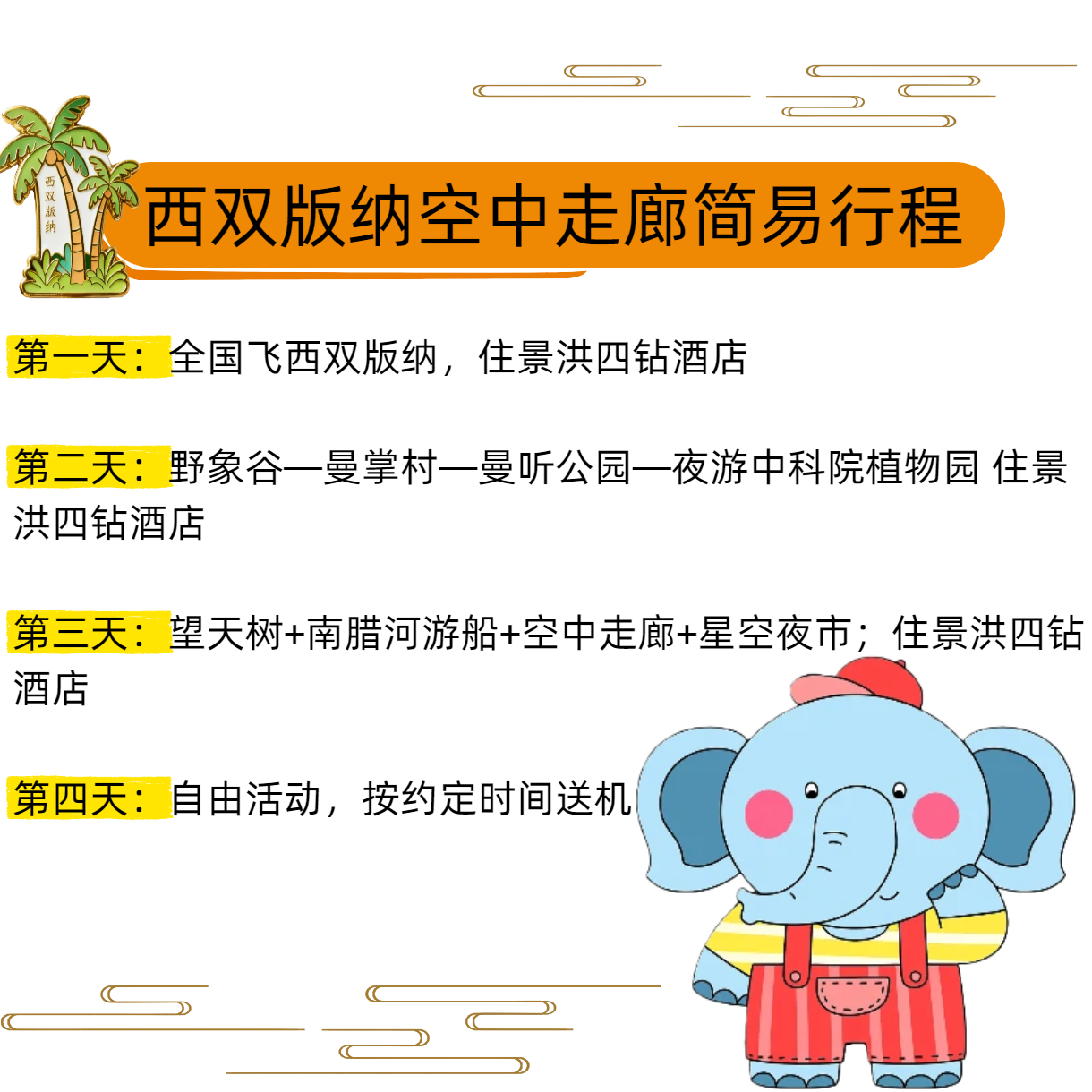 专为差旅人士打造的西双版纳4天3晚自由行,充分尊重您的时间节奏。无需早起集合、不必疲于奔波,您可以睡到自然醒,根据个人兴趣灵活安排每日游览内容。无论是深度探访野象谷,还是悠闲漫步曼听公园,行程完全由您掌控,真正实现“随心所欲”的度假体验,让出差之余也能享受高质量的休闲时光。