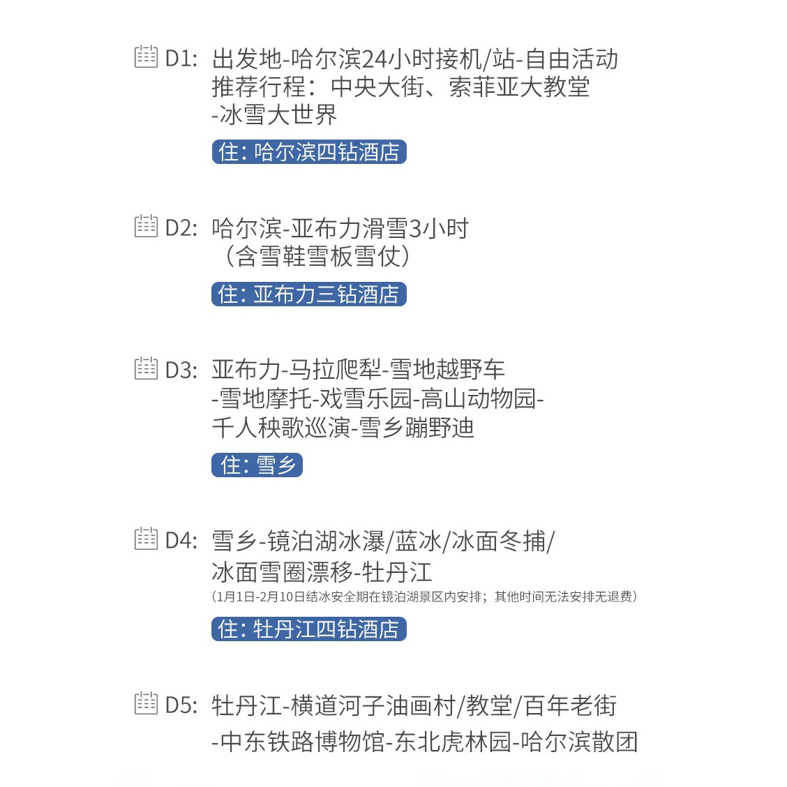 本行程专为从哈尔滨出发的差旅人士设计,无需长途奔波即可开启纯玩冰雪之旅。首日从哈尔滨启程,便捷接驳至雪乡、亚布力等核心景区,节省通勤时间,提升出行效率。特别适合商务出差后顺道放松或周末短途度假的旅客,兼顾高效与休闲,让差旅不再只是工作,更是身心的充电之旅。全程交通安排周密,24小时接机服务更显贴心,确保您从抵达那一刻起便无忧无虑。