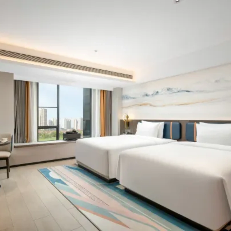 酒店房间采用智能控制系统与极简设计风格,一键调节灯光、空调与窗帘,营造专注高效的办公环境,也便于快速切换至放松模式。简洁线条与中性色调不仅提升空间感,更契合现代商务人士对品质与效率的双重追求,是差旅途中理想的临时办公与休憩空间。