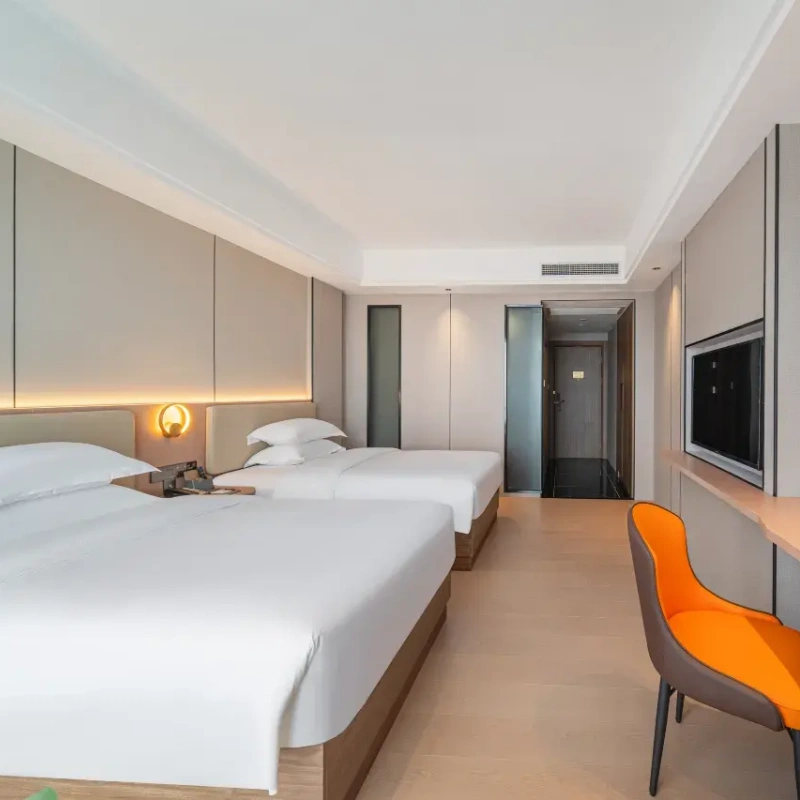 酒店配备现代化智能设施,包括智能控制面板操控窗帘、灯光等,为差旅人士打造高效便捷的临时办公空间。房间宽敞明亮,采光良好,有助于缓解旅途疲劳;整洁卫生的环境更保障健康安全。无论是视频会议还是文档处理,智能与舒适的结合让移动办公事半功倍,是商务出行的理想下榻之选。