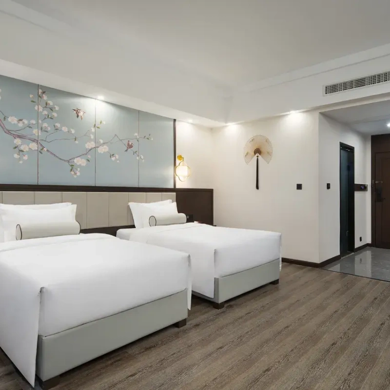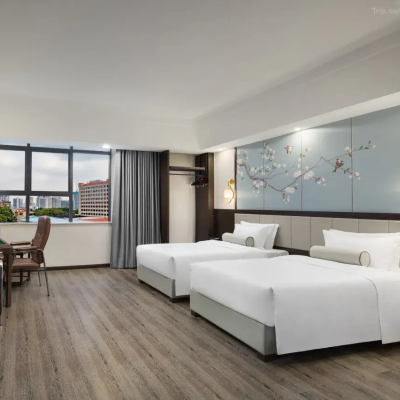 差旅舒适保障:宽敞明亮客房配柔软床品助您深度休息