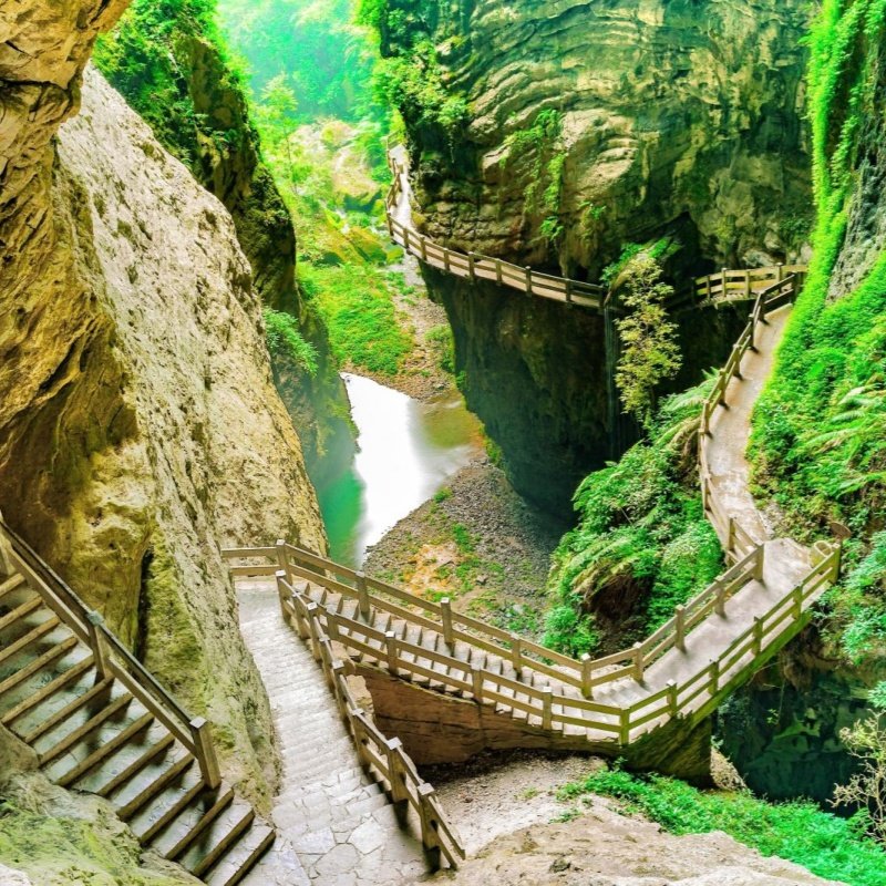 行程涵盖联合国教科文组织认证的世界自然遗产——武隆天生三桥与龙水峡地缝,让您在5日内高效打卡重庆核心地质奇观。作为《变形金刚》《满城尽带黄金甲》取景地,此处兼具震撼自然景观与影视文化魅力,满足差旅人士高效游览高价值景点的需求。