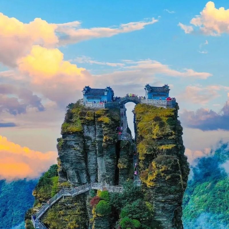 作为联合国教科文组织世界自然遗产,梵净山被誉为‘梵天净土’,其云海、金顶与原始森林构成绝佳的减压空间。差旅途中安排登顶行程,让您远离城市喧嚣,在海拔2500米的纯净空气中洗涤身心。无论是清晨观日出,还是漫步万米睡佛步道,都能为高强度工作后的您带来深层放松与灵感重启。