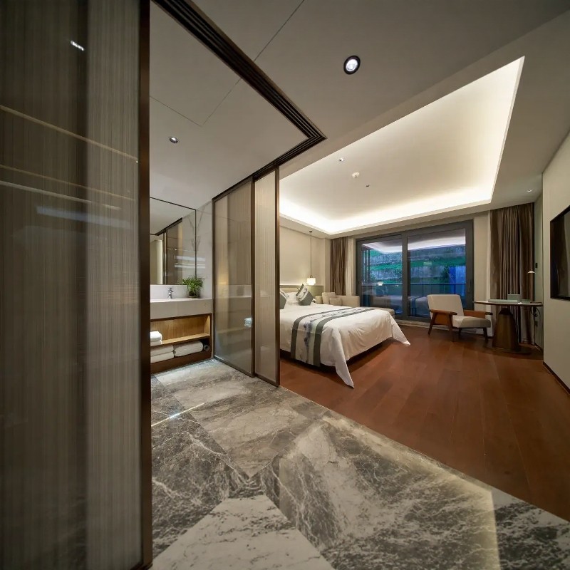 在快节奏的差旅生活中,身心疲惫在所难免。庄园内的无边泳池依山而建,视野开阔,是放松减压的绝佳去处。畅游之后,漫步竹林小径,呼吸高负氧离子空气,有效缓解旅途疲劳。这种‘酒店即目的地’的设计理念,让短暂停留也能收获深度疗愈。