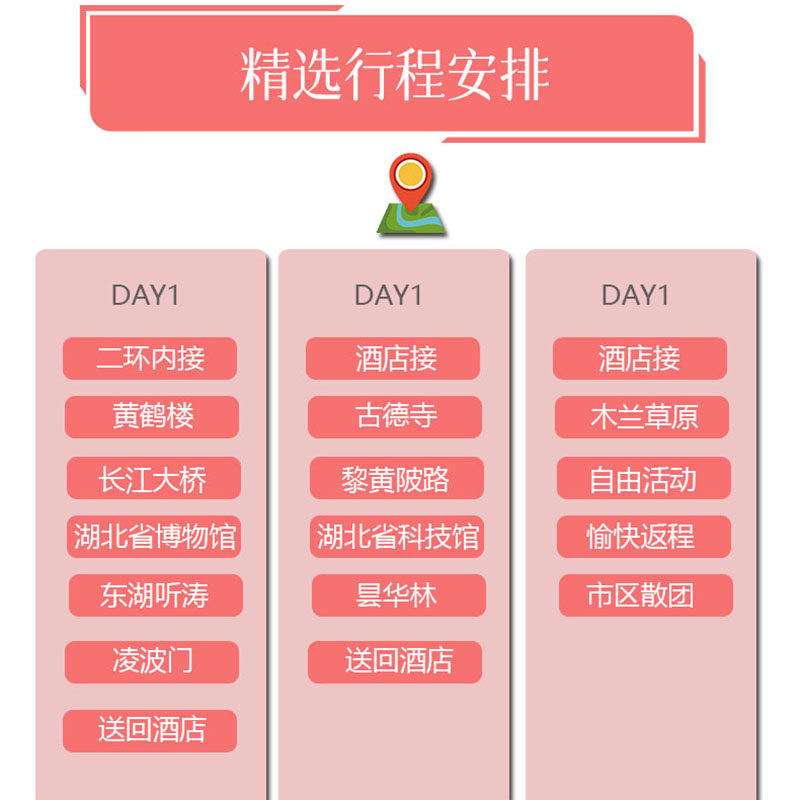 专为商务差旅人士设计的武汉3日游线路,巧妙串联黄鹤楼、长江大桥、湖北省博物馆、古德寺与木兰草原等核心景点,全程交通接驳顺畅,避免无效奔波。行程安排兼顾白天会议与晚间休闲,确保您在有限时间内高效完成公务之余,也能深度体验江城人文与自然魅力,实现工作与度假的无缝切换。
