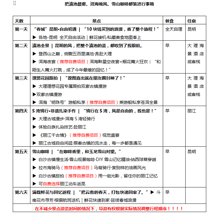 无论您从上海、北京、广州、深圳等一线城市,还是成都、西安、武汉、杭州等新一线枢纽出发,均可便捷抵达昆明,开启6天纯玩之旅。航班网络密集,差旅人士可灵活安排周末或小长假出行,落地即享专属接机与行程衔接,省去中转烦恼,高效切换工作与度假状态,真正实现‘说走就走’的商务休闲融合体验。
