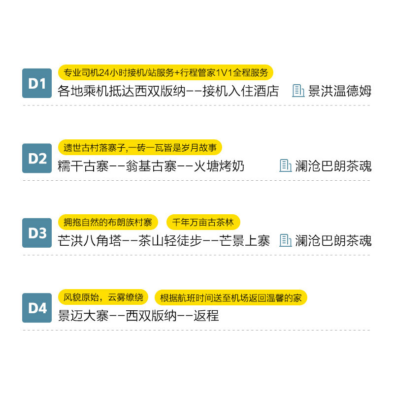 巧妙规划西双版纳与普洱两地行程,利用地理邻近优势,实现一次出行双倍收获。上午在版纳处理事务,下午驱车前往普洱探访古茶山,最大化利用差旅时间。公路旅行沿途风景如画,让通勤本身也成为一种享受,告别枯燥转场,提升整体出行效率与体验感。