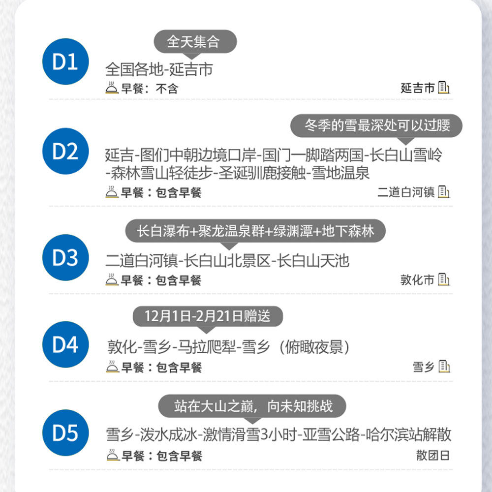 线路覆盖吉林延边与黑龙江牡丹江两大目的地,巧妙连接图们口岸、长白山、雪岭及雪乡等核心景点,避免重复往返。对于需在东北多地出差的旅客,此行程可作为差旅间隙的延伸度假方案,一次出行兼顾多城商务与观光需求,节省时间成本,提升差旅附加值。