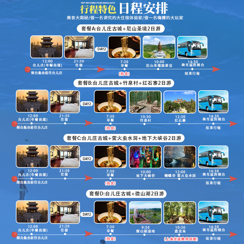 精心规划的2日行程,周五晚或周六早从烟台出发,周日傍晚返回,无缝衔接常规工作周期。无需额外请假,即可完成一次深度文化度假。路线涵盖古城、湖泊、峡谷、圣境四大主题,内容丰富却不显疲惫,是差旅族高效利用碎片化假期的理想选择。