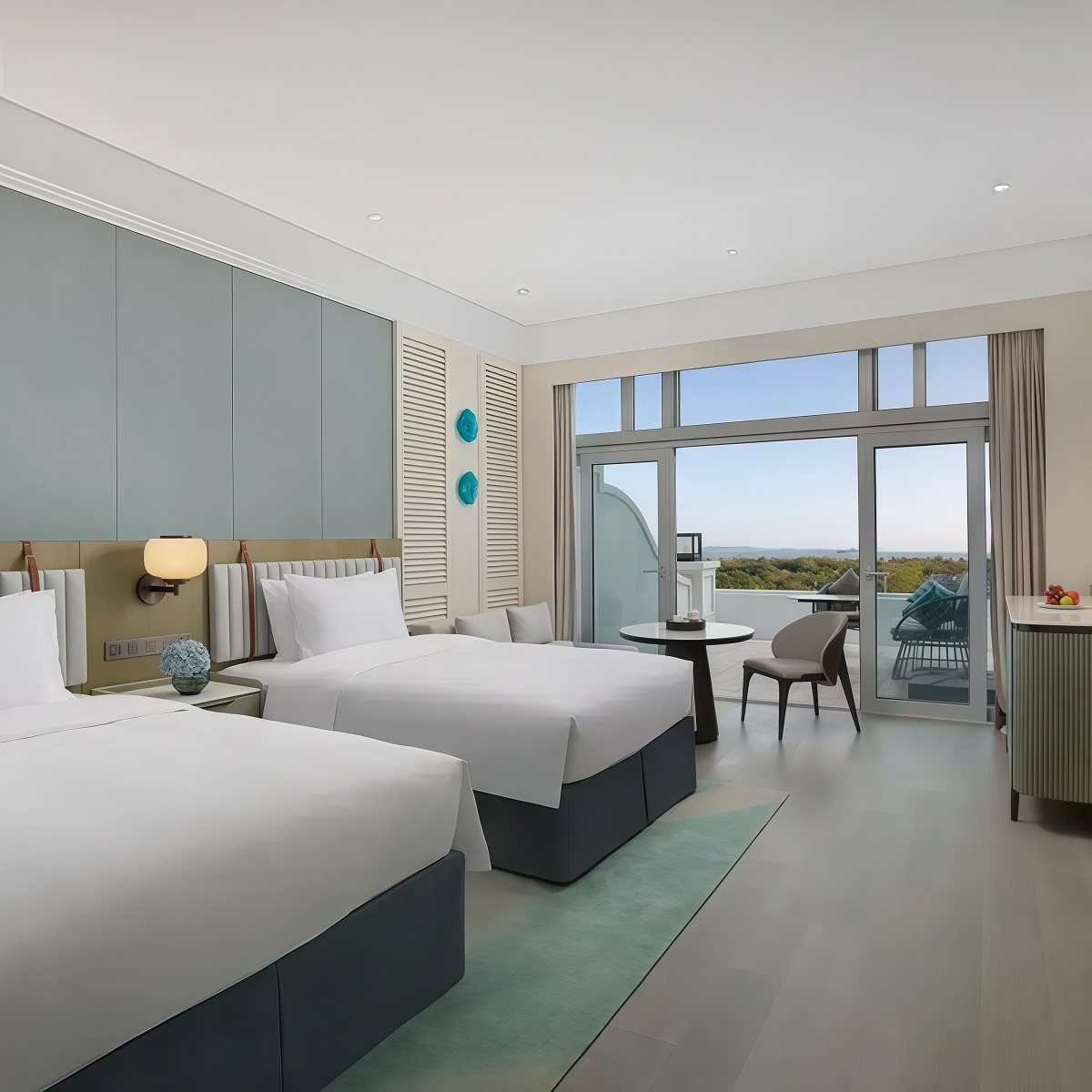 长时间面对电脑与会议容易造成视觉疲劳,而本套餐提供的豪华海景双床房配有超大观海露台,推窗即见碧波万顷。无论是晨间咖啡还是夜间小憩,海天一色的开阔视野都能有效缓解压力、激发灵感。这种将自然美景融入差旅住宿的设计,是对高效工作者的最佳犒赏。