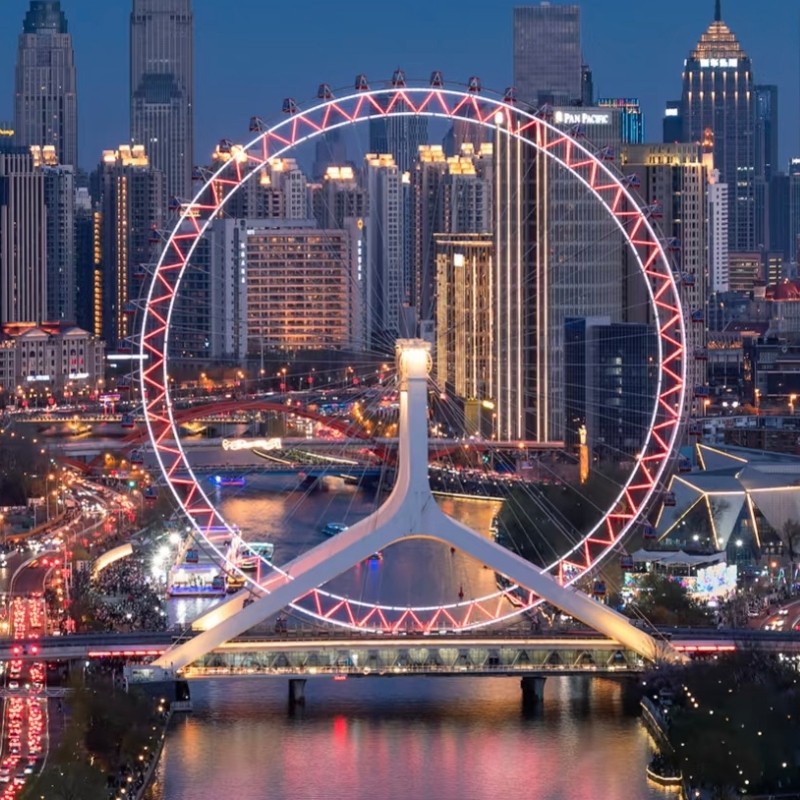 行程包含天津地标——天津之眼摩天轮体验。这座建在永乐桥上的巨型观景轮,是全球少有的“桥上摩天轮”。无论白天还是夜晚登舱,都能360度饱览海河两岸风光。对于差旅中的您来说,这不仅是一次观光,更是在忙碌之余犒赏自己的浪漫仪式感。