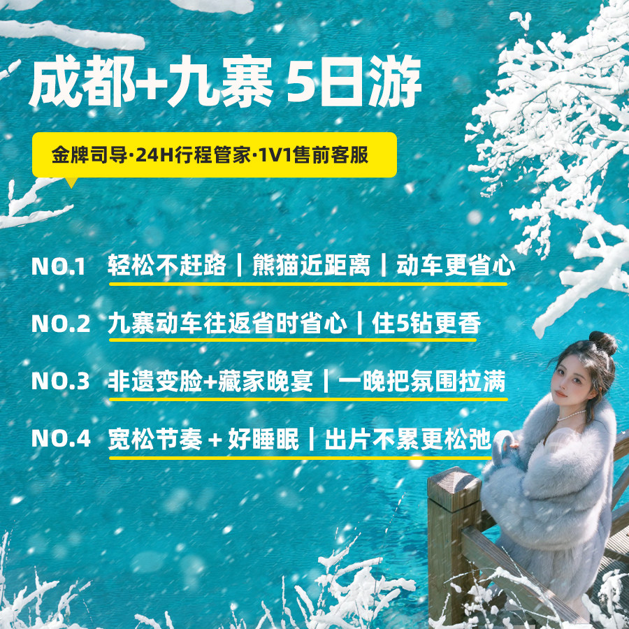 从成都出发,科学规划路线,将世界自然遗产九寨沟与黄龙景区纳入5日行程,实现差旅与自然观光的无缝衔接。专业导游全程陪同,交通住宿全包,节省自行安排行程的时间成本。即便仅有短暂假期,也能高效打卡川西最精华的山水秘境,提升差旅附加值。