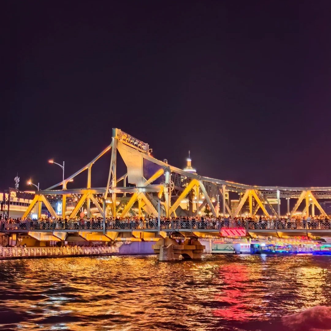 乘船欣赏两岸璀璨灯火与风格各异的桥梁,感受天津独特魅力。