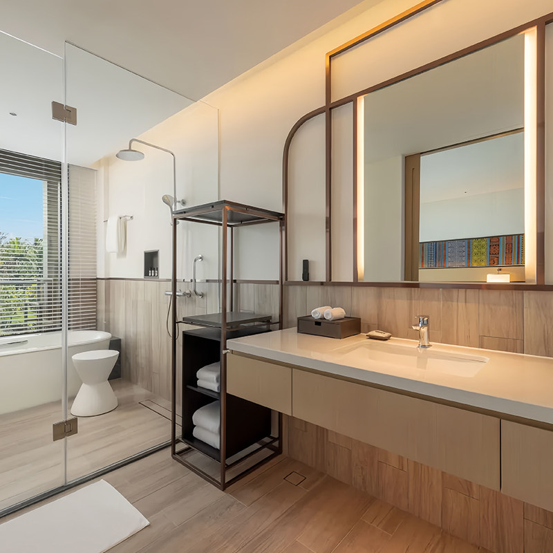 酒店地理位置优越,步行几分钟即可抵达细腻白沙滩,让差旅人士在会议间隙或工作结束后轻松享受海风与阳光。这种“零距离亲海”设计极大提升了行程效率,避免了传统海岛游中频繁换乘的繁琐,特别适合时间紧凑的商务客群,实现从会议室到度假区的无缝切换。
