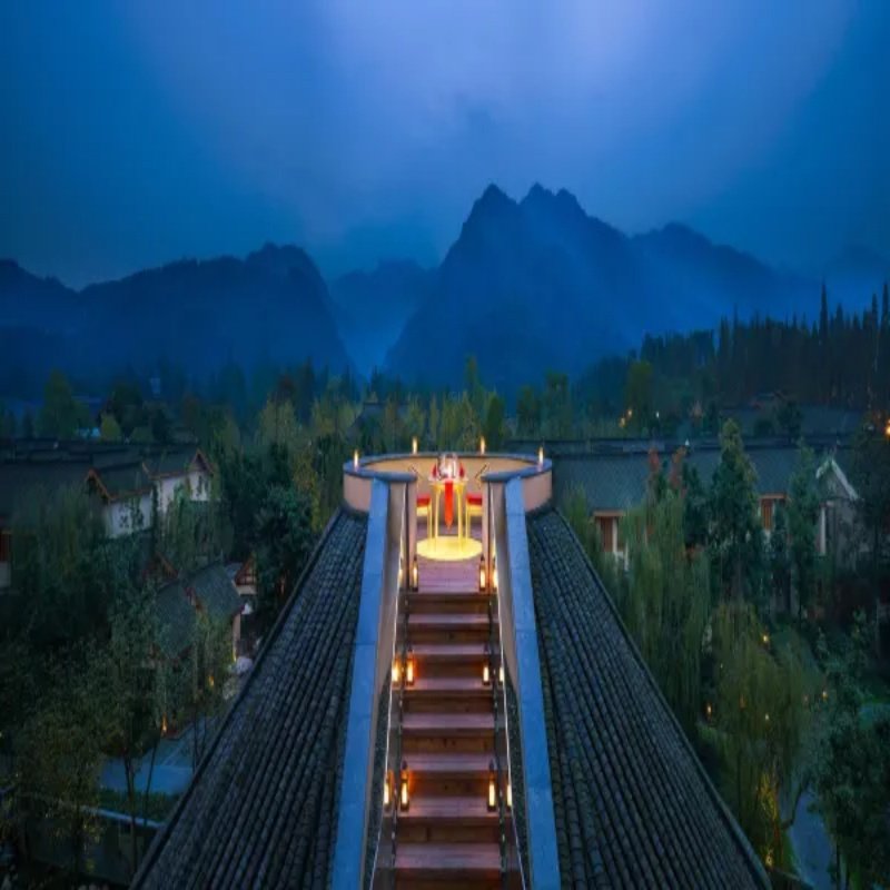 青城山六善酒店巧妙融合中式园林建筑与现代功能设计,为差旅注入人文旅行的深度。漫步于曲径回廊,感受传统造园艺术与自然山水的和谐共生,激发创新思维。酒店细节处处体现东方美学——原木结构、藤编灯饰、灰褐色调家具,不仅赏心悦目,更营造出沉静专注的心境,助力商务人士在文化氛围中高效完成工作任务。