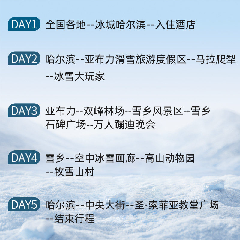精心设计5天4晚行程,完美适配年假、调休或周末延展的短周期假期。从抵达哈尔滨到深度体验雪乡、滑雪、篝火晚会等核心项目,节奏张弛有度,避免过度疲劳。差旅人士可在有限时间内高效打卡东北冬季精华,返程后迅速回归工作状态,无后顾之忧。