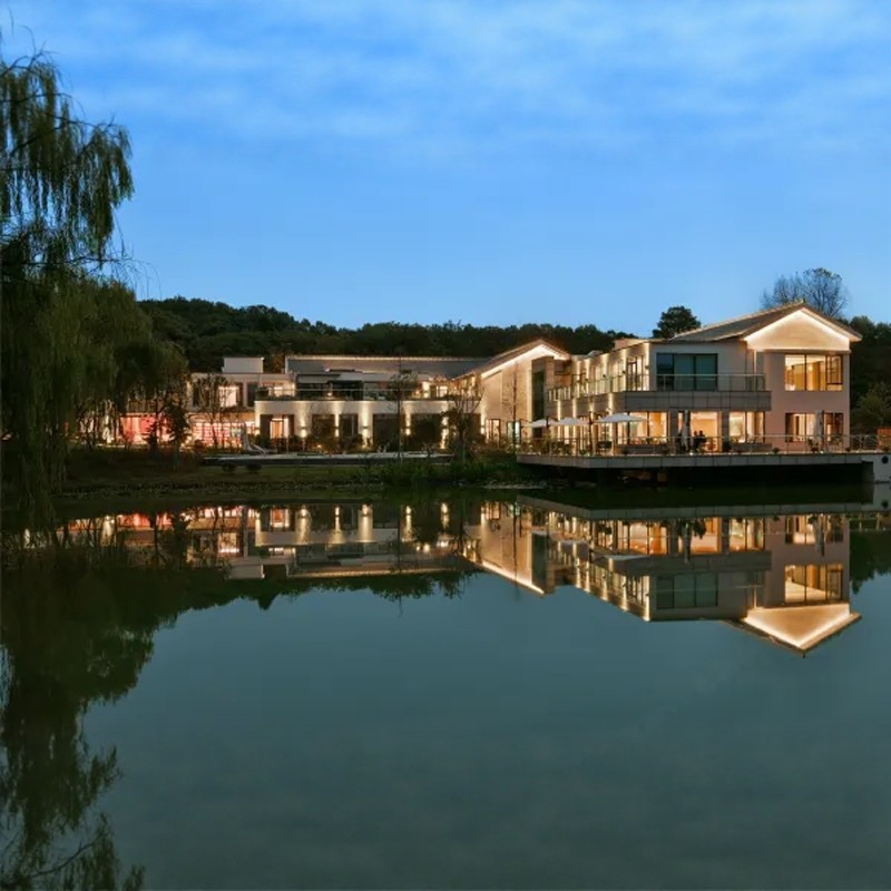 作为知名人文精品酒店品牌,花间堂·琵琶山居将南京本地云锦艺术融入空间设计,以墨绿与砂粉为主色调,打造兼具文雅与奢华的居住环境。六十余间客房分设于依山居与湖畔居,每间都传递着东方美学与现代舒适的平衡。差旅途中入住于此,不仅是一次休憩,更是一场文化沉浸之旅。