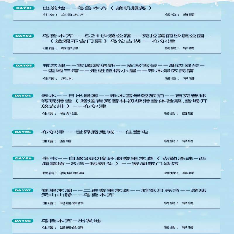 行程涵盖阿勒泰吉克普林国际滑雪场及网红“泼水成冰”奇观体验,为来自南方城市如温州、绍兴、厦门等地的差旅者提供难得的冰雪互动机会。即使短暂出差间隙,也能沉浸式感受冬季新疆的独特魅力,打造难忘的跨地域文化记忆点。